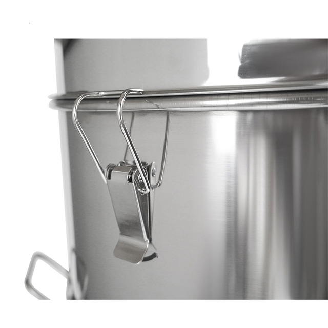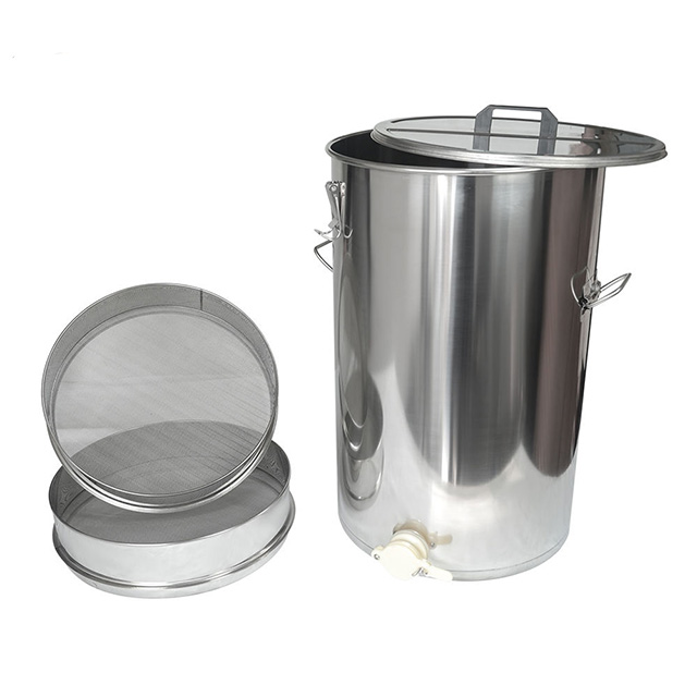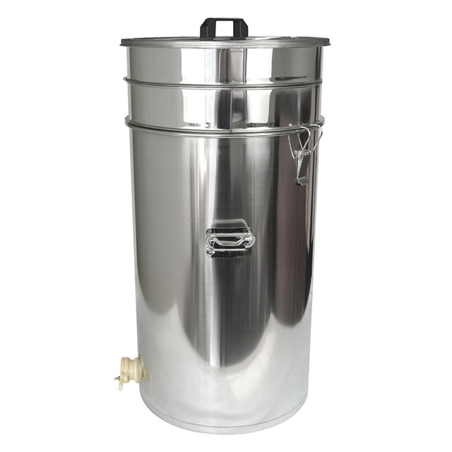 The honey tank is one of the important containers for bee farming, honey collection and honey storage. Our honey tank is an integrated tank which includes storage tank and honey filtering strainers. With buckles at both sides, convenient for moving; with cover on the top, keep honey inside clean; with honey gate at bottom, convenient for flow out honey.